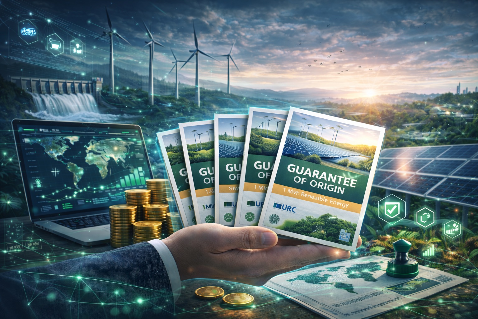 Las Garantías de Origen son certificados electrónicos emitidos por organismos reguladores que acreditan que 1 MWh de electricidad ha sido generado a partir de energías renovables.