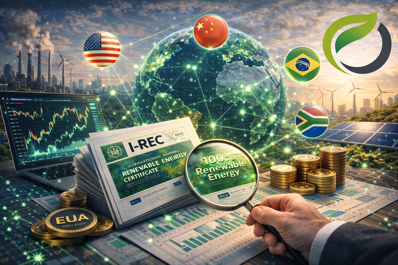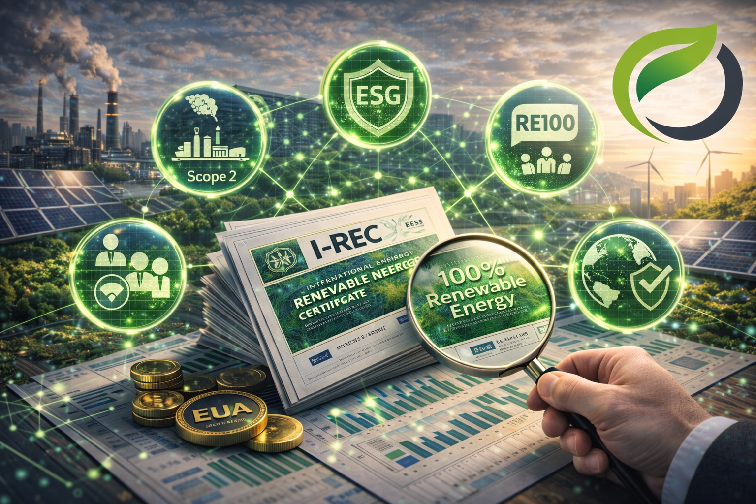 Especialistas en I-REC Trading. Compra de certificados internacionales de energía renovable para reducir emisiones Scope 2 y cumplir objetivos ESG y RE100.