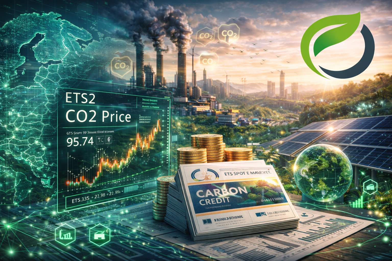 Análisis del mercado de carbono, precio del carbono ETS2 y soluciones de compensación. Trading de CO₂, mercado voluntario de carbono y estrategias empresariales.