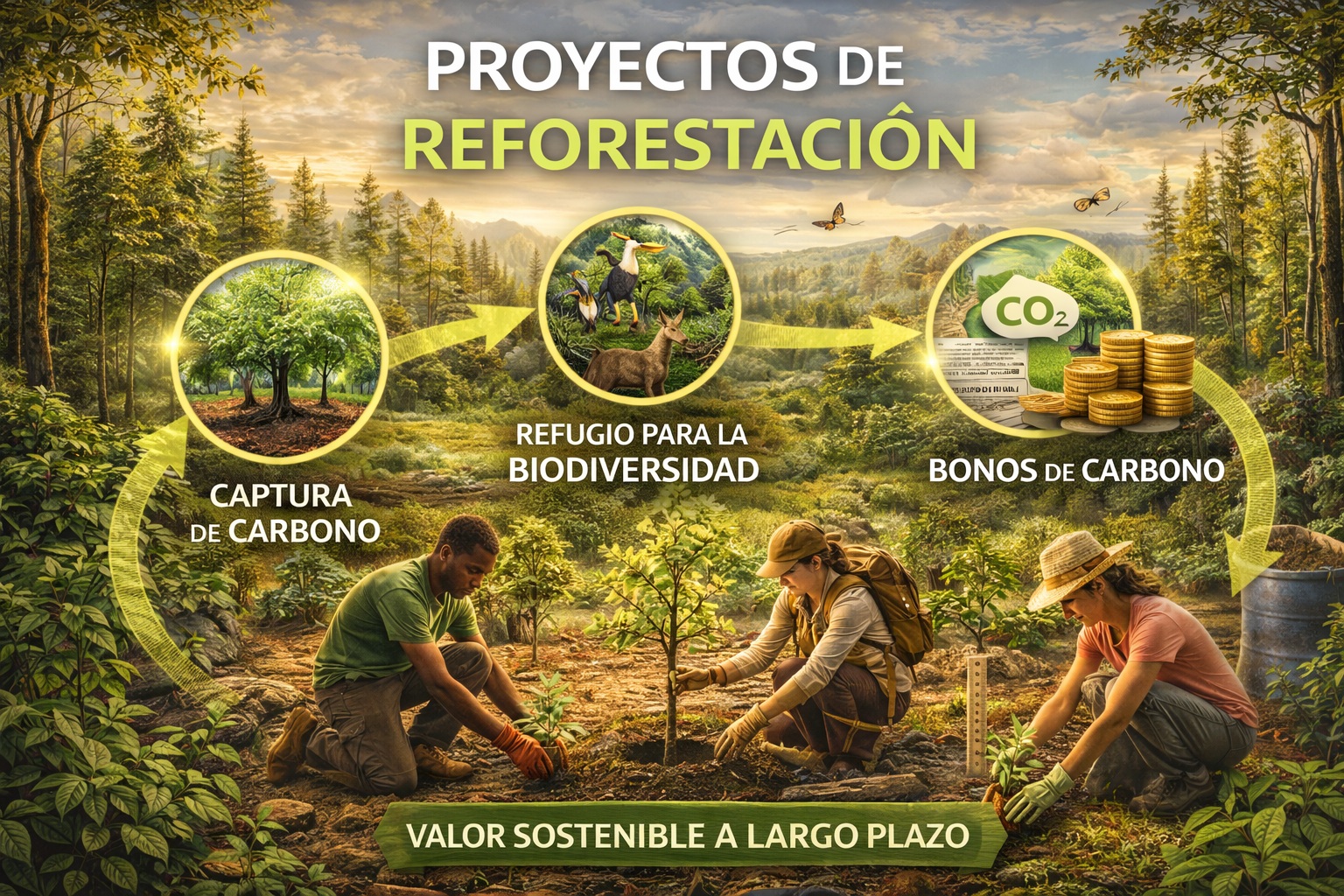 Reforestar es invertir en el futuro. Plantar, restaurar y proteger bosques captura carbono, fortalece la biodiversidad y genera valor sostenible a largo plazo. Naturaleza bien gestionada, impacto que perdura.