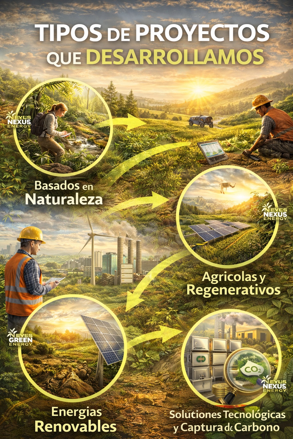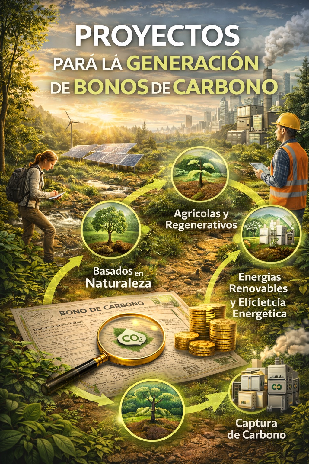 En Nexus Green Energy desarrollamos y estructuramos proyectos para la generación de bonos de carbono bajo los más altos estándares internacionales, asegurando que cada crédito represente impacto ambiental real, adicional y trazable.